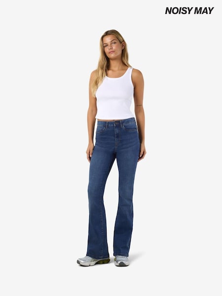 NOISY MAY Blue High Waisted Slim Flared Leg Jeans