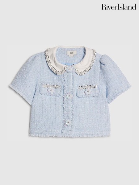 River Island Blue Embellished Collar Boucle Jacket