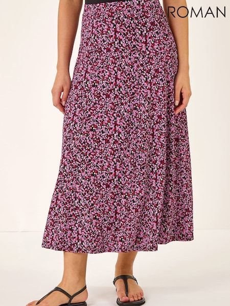 Roman Pink Ditsy Floral Stretch Maxi Skirt