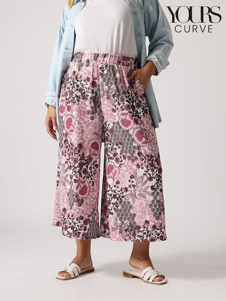 Yours Curve Pink Floral Jersey Wide Leg Trousers