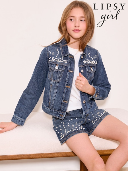 Lipsy Dark Wash Blue Embellished Denim Jacket (5-16yrs)