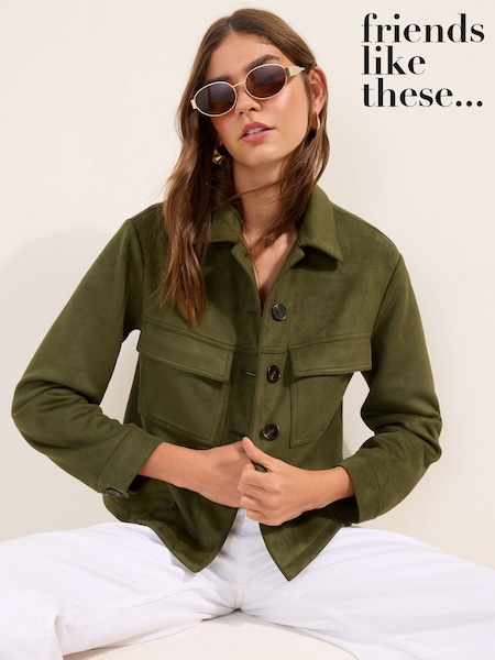 Friends Like These Khaki Green Faux Suede Pocket Front Button Jacket