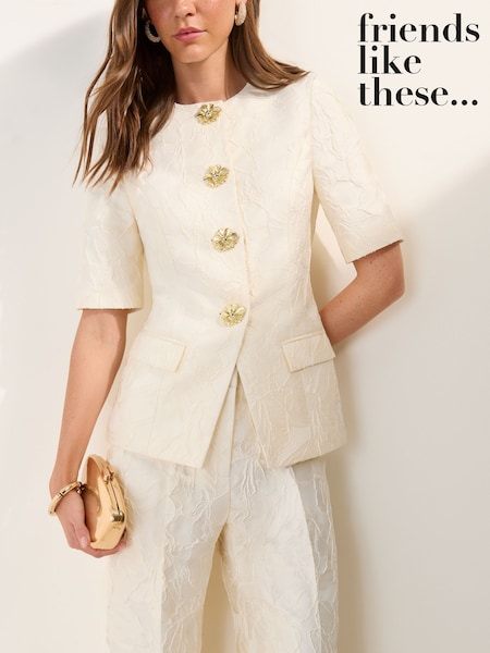 Friends Like These Cream Premium Floral Jacquard Blazer