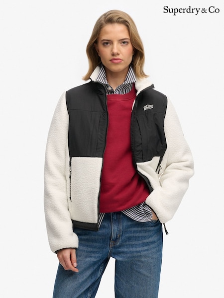 SUPERDRY White Polar Fleece Hybrid Trekker Jacket