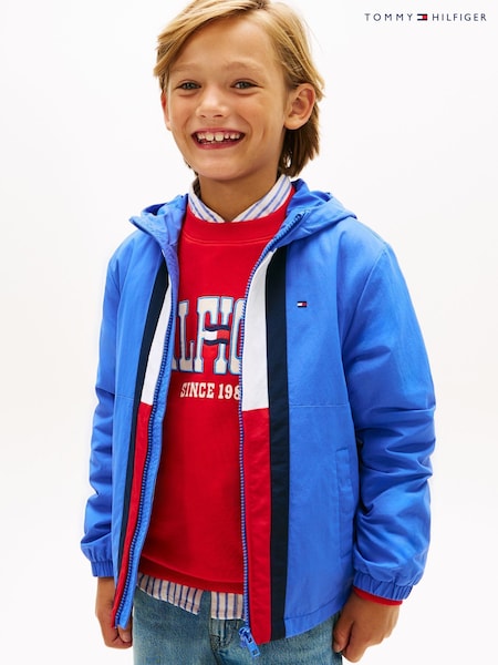 Tommy Hilfiger Blue Colour Blocked Flag Hooded Jacket