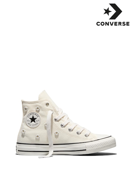 Converse White Chuck Taylor Beaded Flower Hightop Trainers
