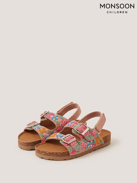 Monsoon Brown Floral Beaded Buckle Strap Sandals