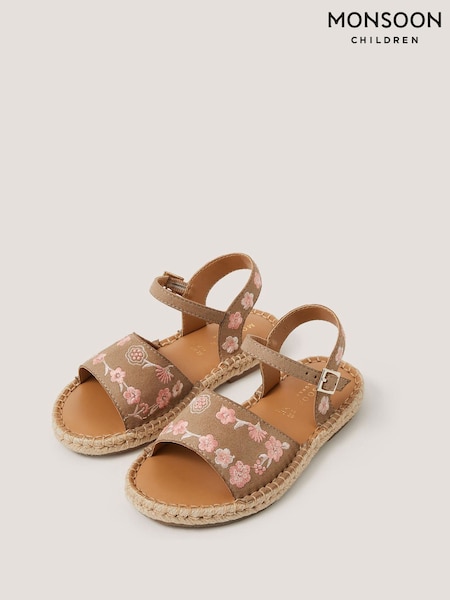 Monsoon Brown Floral Embroidered Espadrille Sandals