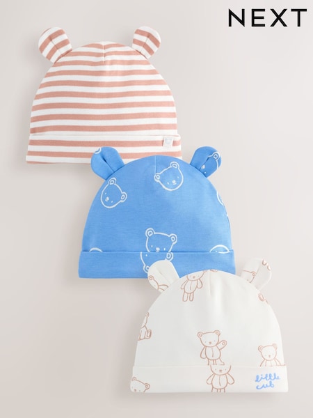 Blue/Ecru Bear Baby Beanies 3 Pack (0-18mths)