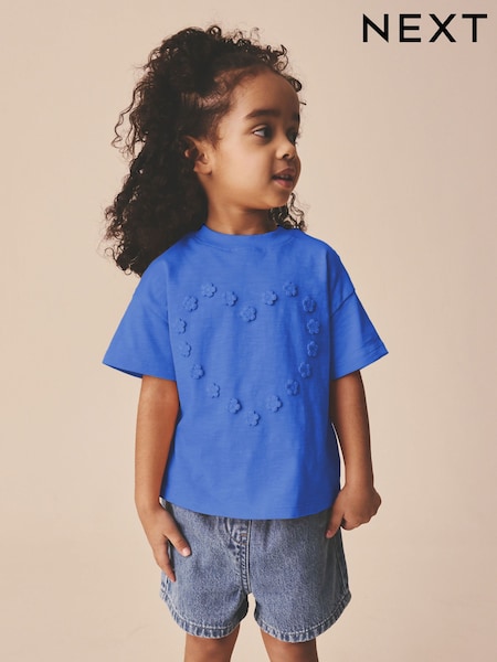 Blue Short Sleeve Applique Flower T-Shirt (3mths-7yrs)
