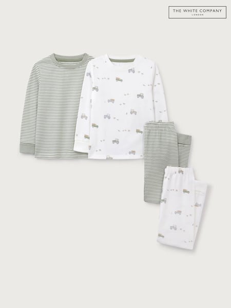 The White Company White Cotton Blend Farmyard & Stripe Slim Fit Pyjamas Set Of 2