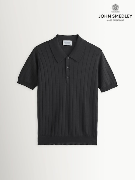 John Smedley Blue Williams Short Sleeve Rib Wool Cotton Polo Shirt