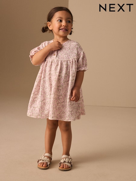 Pink Floral Button Jersey Dress (3mths-7yrs)