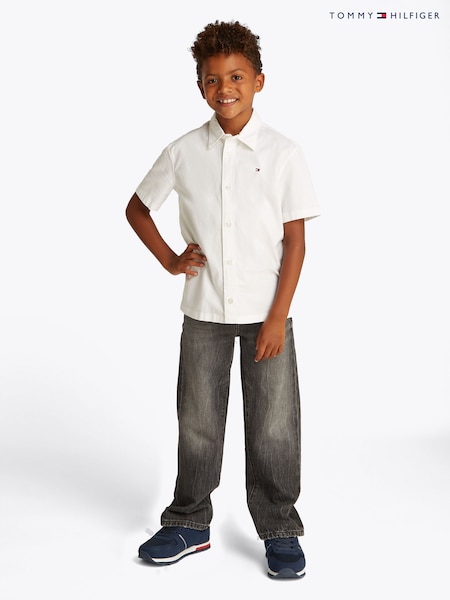 Tommy Hilfiger White Essential Flag Embroidery Short Sleeve Oxford Shirt
