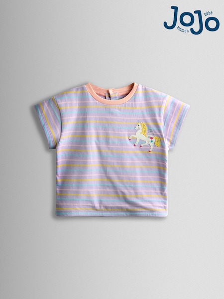 JoJo Maman Bébé Lilac Purple Unicorn Stripe Relaxed T-Shirt