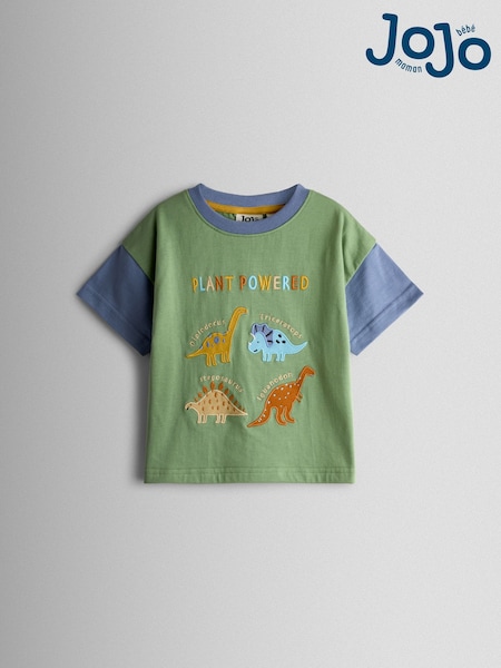 JoJo Maman Bébé Khaki Green Dino Plant Powered Applique T-Shirt