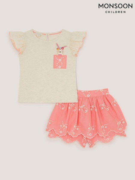 Monsoon Pink Bunny T-Shirt & Broderie Skort Set