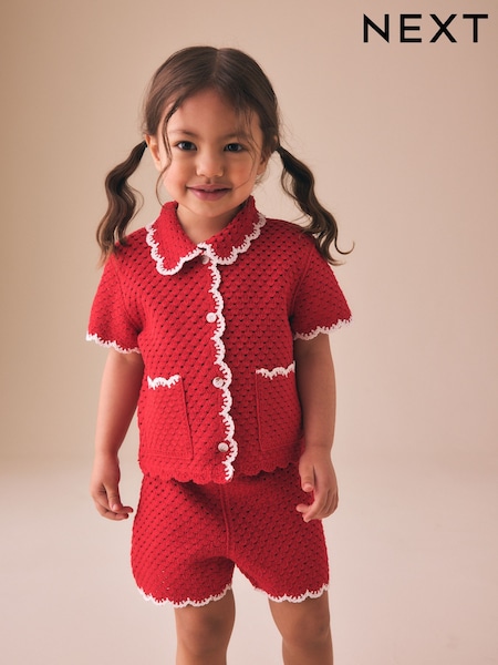 Red Scallop Edge Crochet Set (3mths-7yrs)