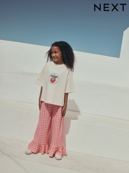 Fruit Graphic/Red Gingham T-Shirt and Frill Hem Trousers Set (3-16yrs)