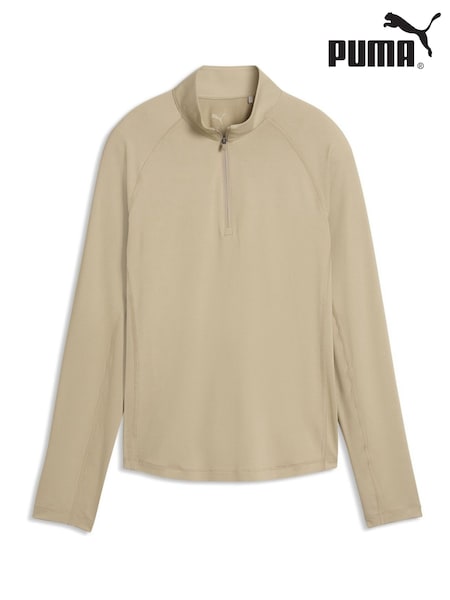 Puma Brown YOU-V Solid Quarter-Zip Golf T-Shirt