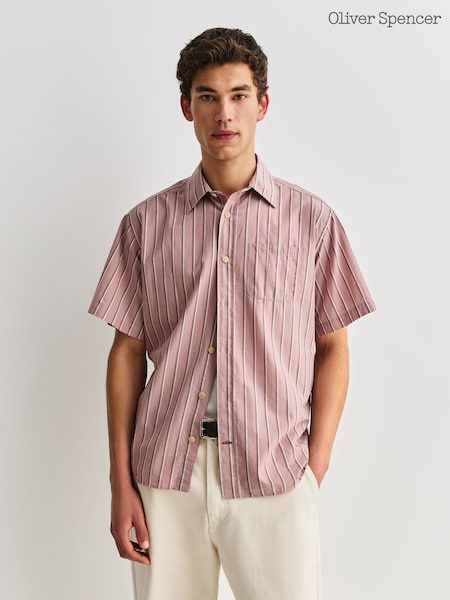 Oliver Spencer Pink Atlanta Short Sleeve Stripe Shirt