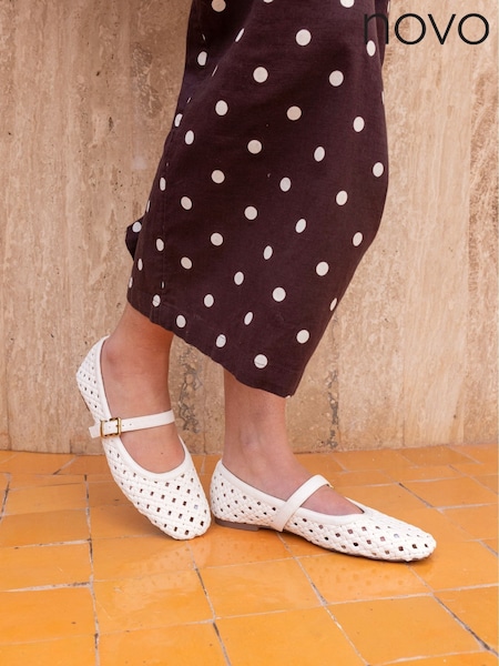 Novo White Wide Fit Faye Woven Mary Jane Flat Shoes