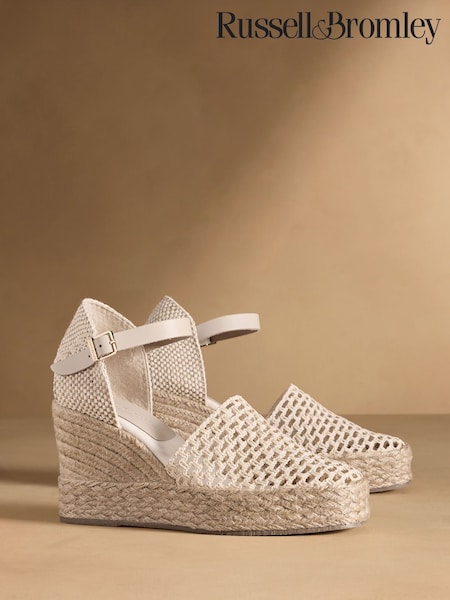 Russell & Bromley Neutral Hale Weave Crochet Espadrille Wedge