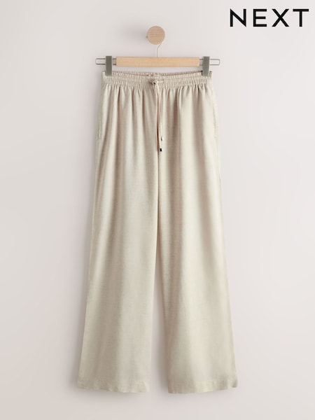 Neutral Pull On Wide Leg Trousers With Linen