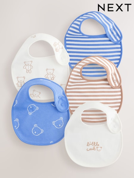 Blue/Ecru Bear Baby Bibs 5 Pack