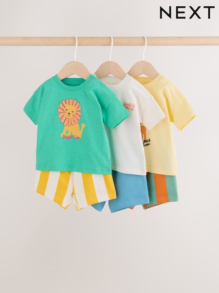Green/Yellow Safari Animal Tops and Shorts Baby Set 6 Piece (0mths-3yrs)