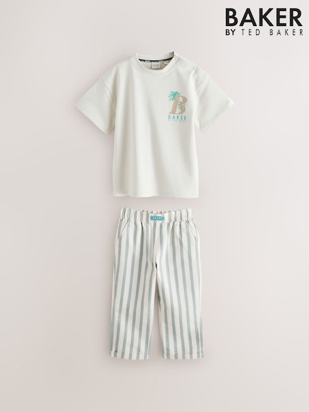 Baker by Ted Baker Stone Graphic T-Shirt and Stripe Trousers Set