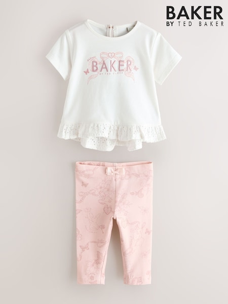 Baker by Ted Baker 2 Piece Broderie Back Peplum Pink T-Shirt & Leggings Set