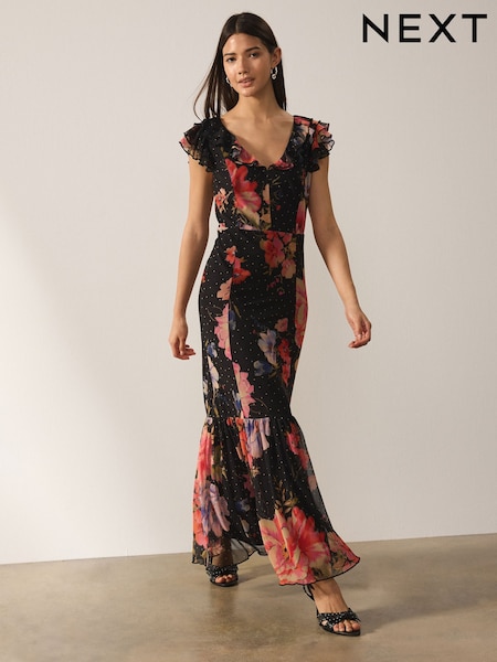Black Mesh Multiway Wedding Guest Bridesmaid Maxi Dress