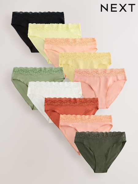 Green/Pink/Yellow High Leg Cotton and Lace Knickers 10 Pack