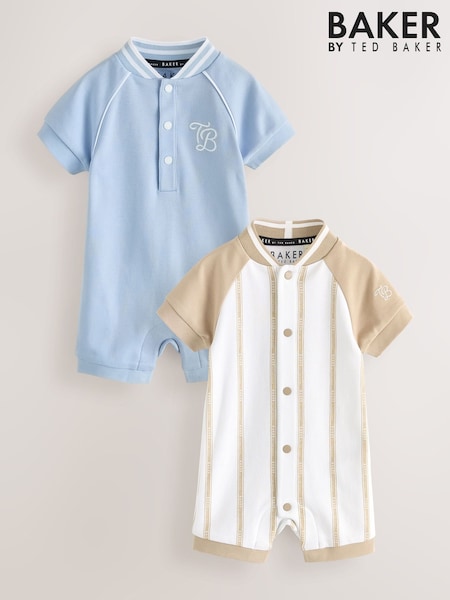 Baker by Ted Baker Blue/Stone Varsity Rompers 2 Pack