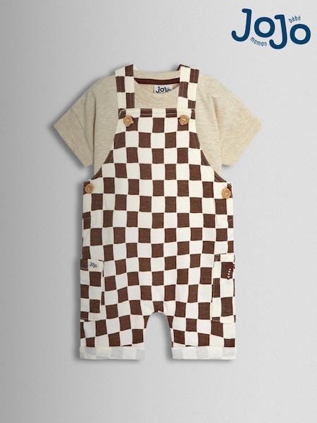 JoJo Maman Bébé Stone 2-Piece Checkerboard Dungarees & T-Shirt Set