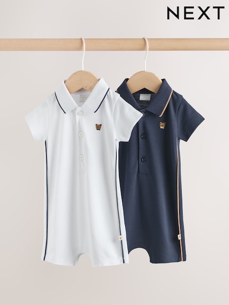 Navy/White Smart Collar Baby Rompers 2 Pack