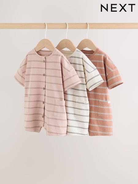 Neutral Stripe Jersey Baby Rompers 3 Pack