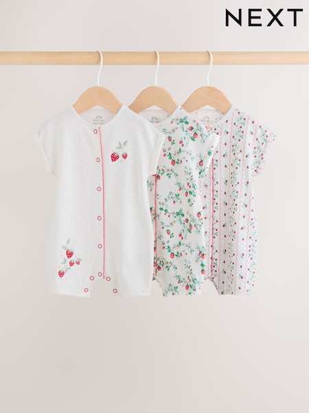 White Strawberry Printed Jersey Baby Romper