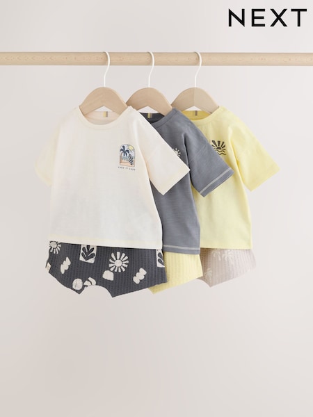 Mono/Fluro Yellow Palms Tops and Shorts Baby Set 6 Piece (0mths-3yrs)