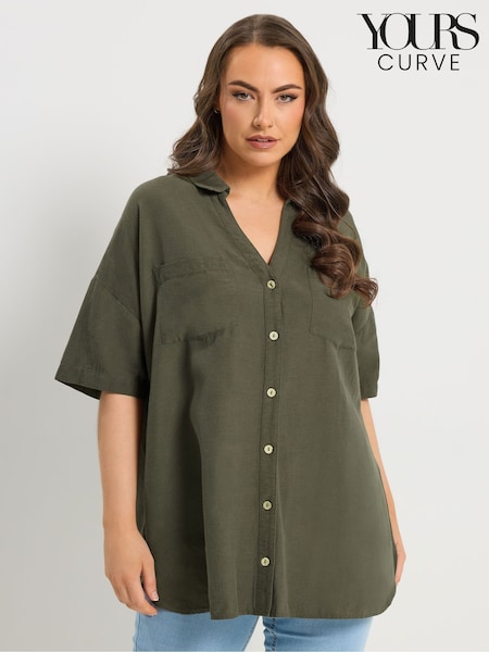 Yours Curve Green Short Sleeve Linen Blend Shirt