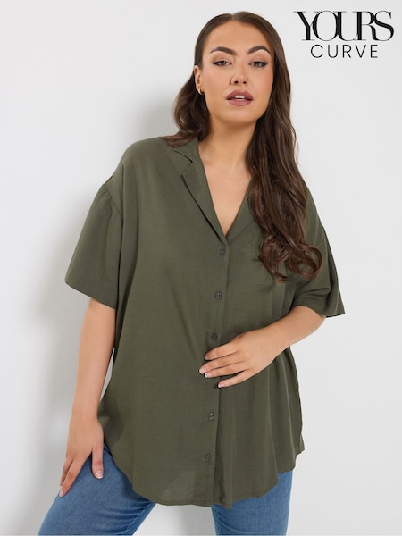 Yours Curve Green Linen Blend Resort Shirt