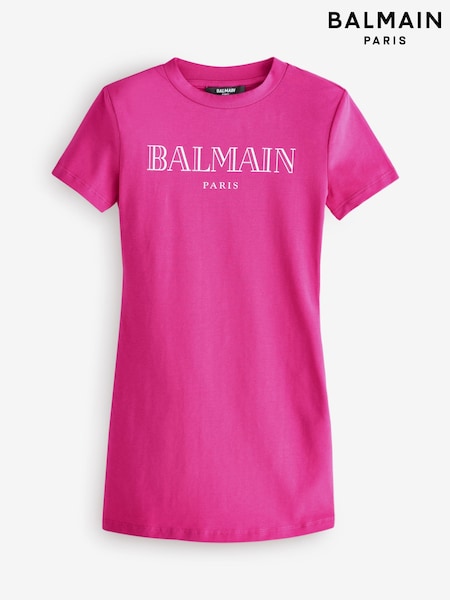 Balmain Pink Short Sleeve Logo Jersey Dress