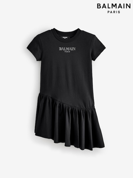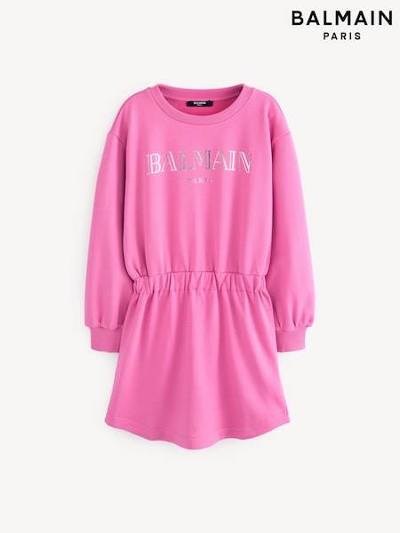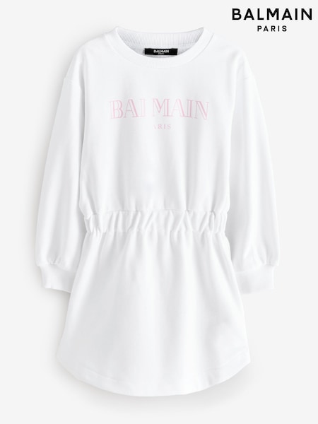 Balmain Long Sleeve Logo Jersey Jumper Dress