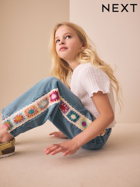 Blue Denim Crochet Embroidered Side Tape Jeans (3-16yrs)