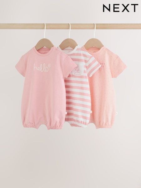 Pink Tonal Striped 3 Pack Jersey Baby Rompers 3 Pack