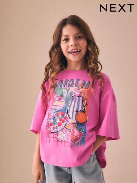 Pink Garden Oversized Boxy Graphic T-Shirt (3-16yrs)