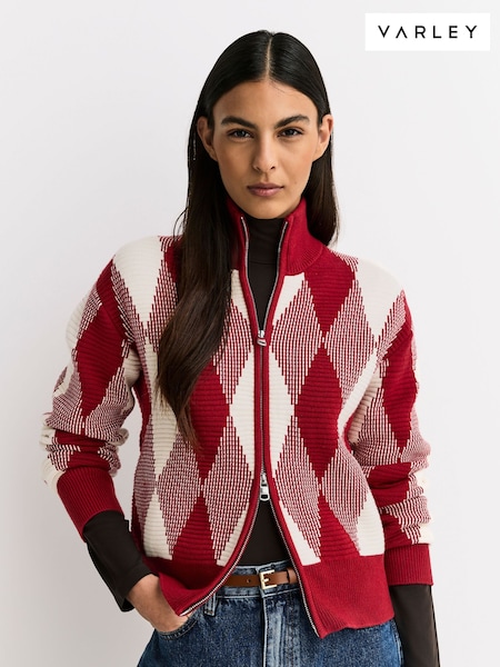 Varley Red Dahlia Karina Jacquard Knit Jacket