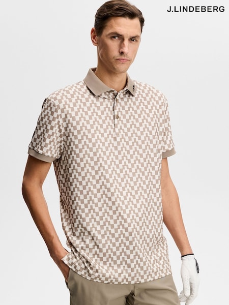 J.Lindeberg Brown Tour Tech Print Polo Shirt