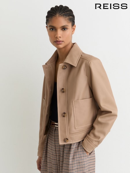 Reiss Neutral Sonny Leather Trucker Jacket